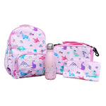 Get sorted for school now with our beautiful blush pink dinosaur backpack set! The set includes a Girls Dinosaur backpack, Girls Dinosaur Lunchbox, Girls Dinosaur Pencil case and Girls Dinosaur Water Bottle that is eco-friendly. This girls school dinosaur backpack set is perfect for back to school but can also be used for travelling. Suitable for kids 3- 6 years old and will last them throughout their younger years.