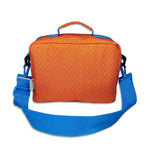 Kids Orange and Blue Personalised Dinosaur Print Lunch Bag - Terry the Triceratops