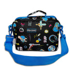 This children's lunch bag is perfect for every day use, whether it's used for school or travel.  Made with durable materials and the PEVA lining is food grade safe and will keep snacks cool and fresh throughout the day. The sonic welding will prevent any leakage if anything bursts and it is easily cleaned with a machine wash.  The added shoulder strap can be attached via the top clips of this gaming lunch bag.  It's a stress free way to carry it to school If your child's hands are full, making life easier when walking with their school bag.