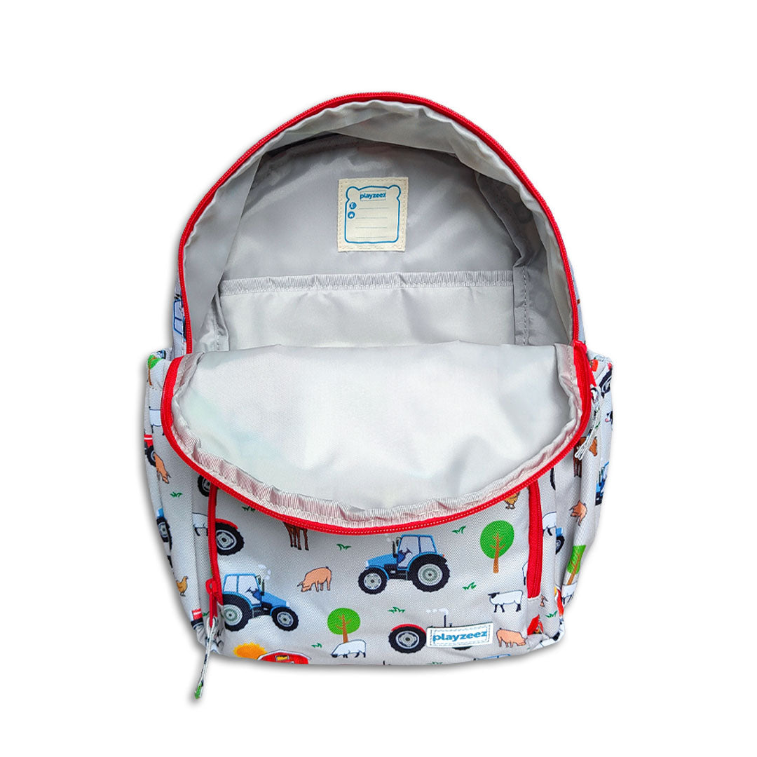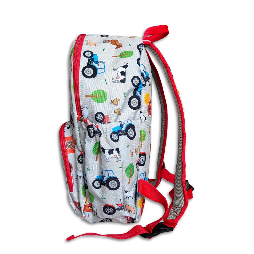 Our bespoke red and grey tractor backpack is like no other and one kids will love!  A great kids travel backpack that is the perfect size for the plane if you're jetting off on holiday.  With little farmers wanting a tractor school bag, we know this fun design will catch their eye and they will fall in love with it when they see it.  There are lots of farm animals on the bag print including cows, sheep, pigs, horses etc, so your little boy or girl farmer will find their favourite pet in no time.