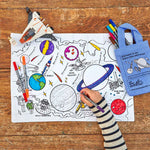 When your mini-space-explorer is ready for a new adventure, simply pop the placemat in the machine, the ink completely disappears, and it’s ready for more colouring-in and space exploration!