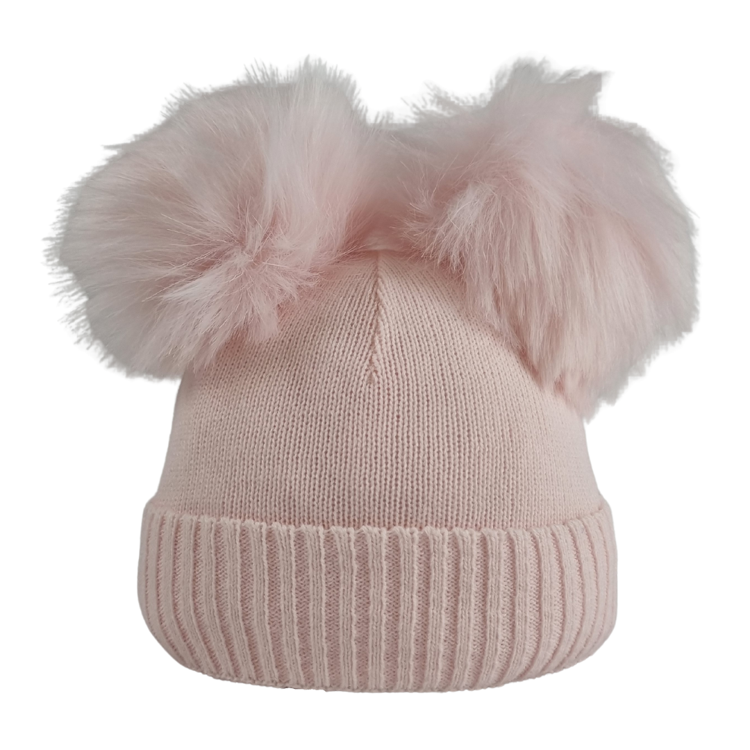Baby Double Pom Pom Beanie Hat - Blush Pink