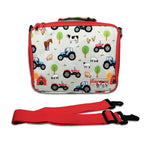 This kids lunch box has been designed with high quality materials to make life easier for kids at school, the PEVA material is food grade safe and will keep food cool and fresh throughout the school day. The sonic welding will prevent any leakage if anything bursts and it is easily cleaned with a machine wash. The added shoulder strap on our Boys Tractor Lunch Box makes it easy to carry when walking with their school bag.