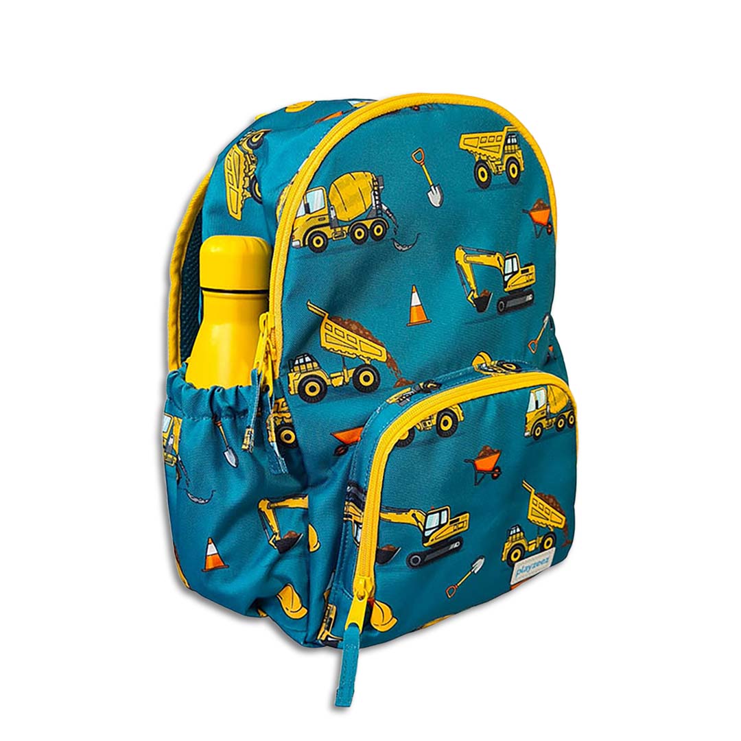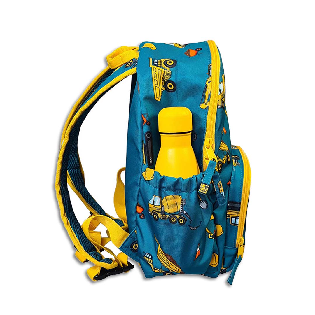 Designed in beautiful green and yellow print our kids digger backpack is inspired by traditional JCB machinery colours! A children's backpack that can be used as a school bag or travel backpack and perfect for any occasion.