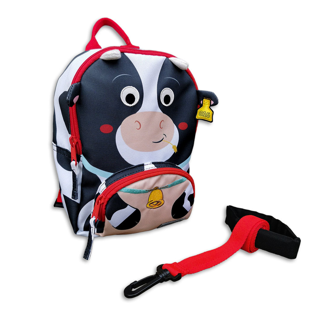 Toddler Mini Black and White Personalised Cow Print Backpack with Reins - Cillian the Cow