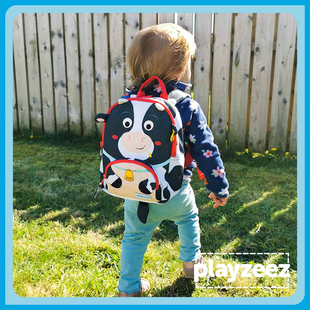 Cillian the Cow bag is a one of a kind toddler backpack with reins that you won't find anywhere. The perfect little nursery bag for toddlers and every little farm lover to take on a Sunday tractor drive with Daddy. Cillian is a black and white cow bag with 3D features that make him come alive to children, making him the perfect companion for all their little adventures. Whether it's going to daycare, a big walk to the shop, or a sleepover at granny's house, he will keep all of their toys and personal belongings safe.